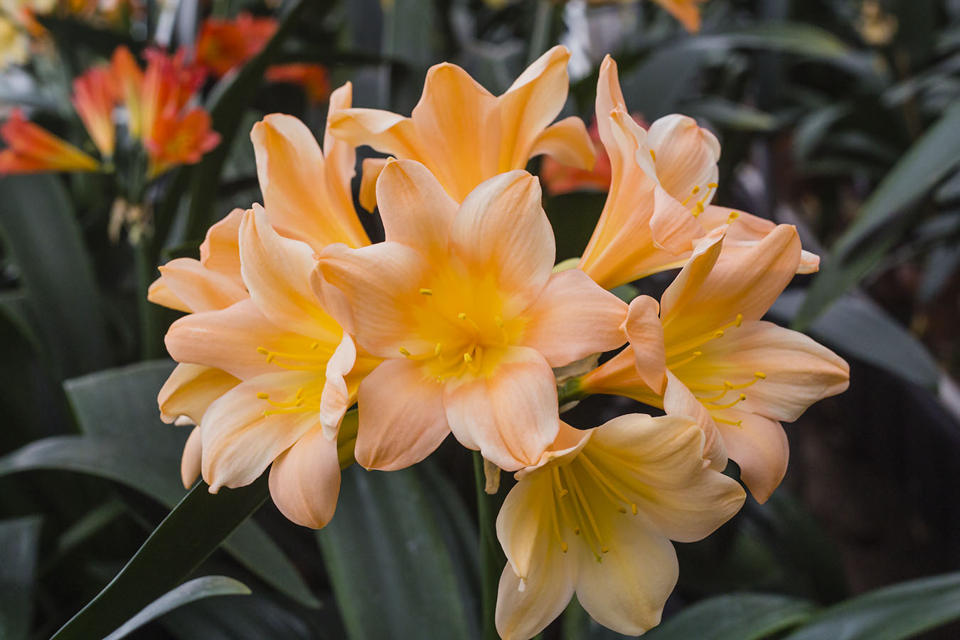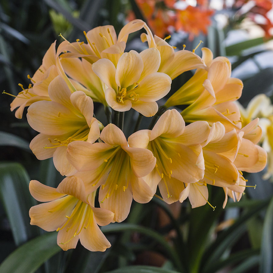 As Colorado Clivia Company's collection continues to grow and develop, each blooming season brings lots of anticipation and excitment. 2018 was another step forward. As plants mature, their blossoms often get bigger, more colorful, and better. This year because of a warmer than normal winter, blooming came two to three weeks early. And instead of the the usual March 1st peak, intense blooming really got started the second week of February and continued until the first week of March. There were new colors, varieties blooming for the first time, and many existing plants presenting even better blossoms than last year. In addition to the old standards, new light peaches, special pinks, and pastel surprises were added to the list of keepers.