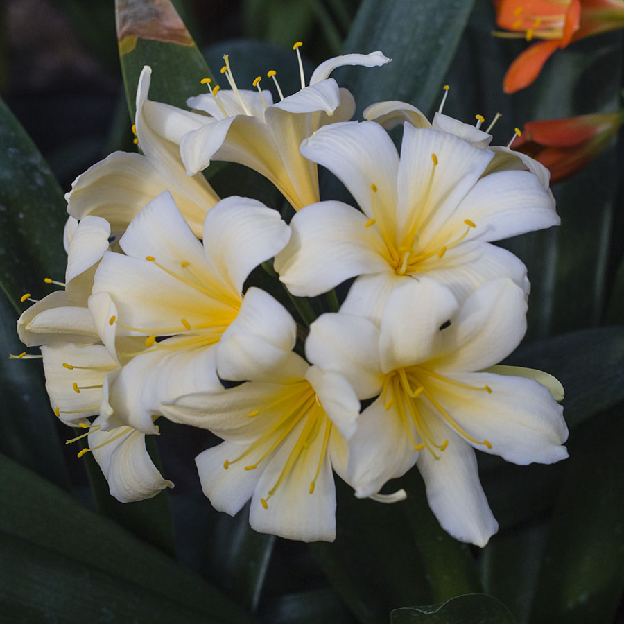 Colorado Clivia plant number 1907B.  Clivia miniata, White Lips 01 x White Lips 02.