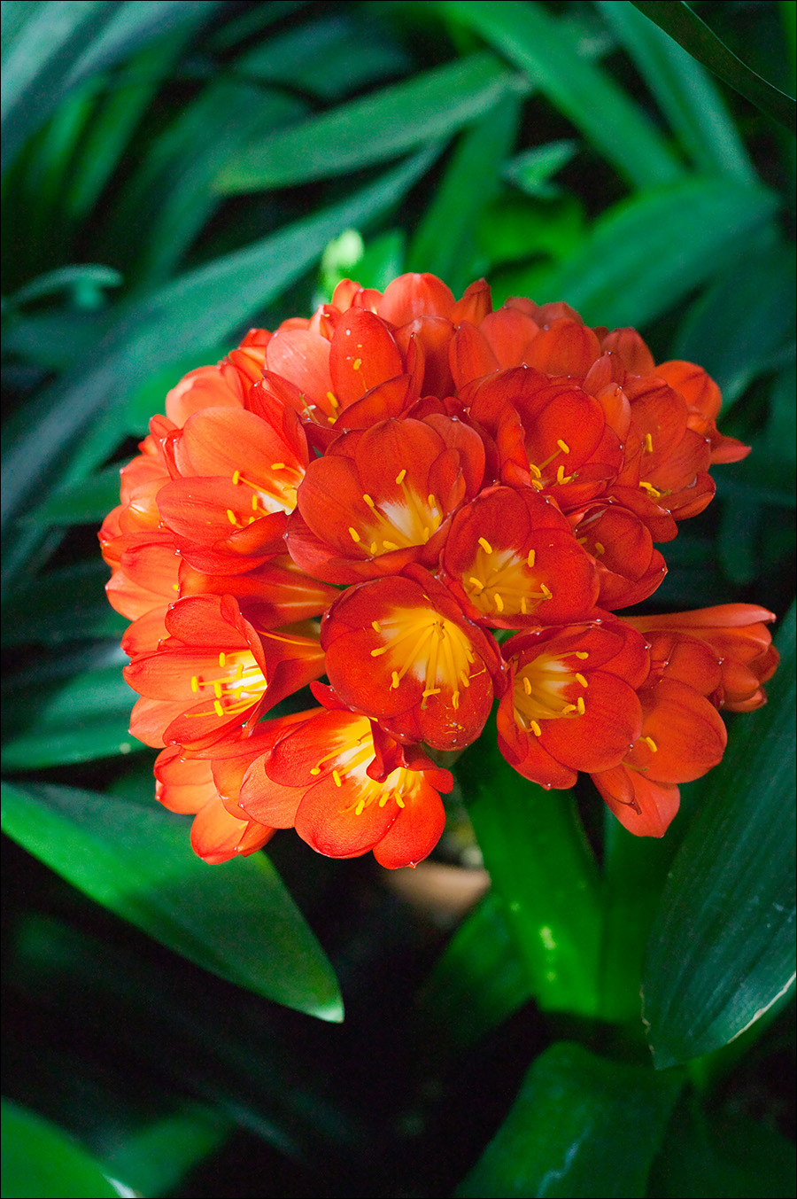 Historically Colorado Clivia Company has collected all six Clivia species. This section of our website presents photographs of our collection--mostly in bloom. Recently, the Clivia nobilis, Clivia gardenii, and Clivia robusta species have been sold off to make room for the expanding Clivia miniata, Clivia miriabilis, and Clivia interspecific sections of the collection. Older photos of the discontinued species are still available here, although there will be no new additions.